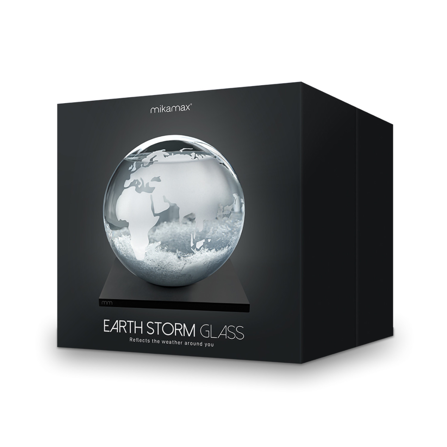 Das Sturmglas ist ein eleganter Wetteranzeiger. Die Kristallformationen im Inneren der Glaskugel verändern sich je nach atmosphärischen Bedingungen und bieten eine visuelle Darstellung von Wetterveränderungen. Die fein geätzte weiße Weltkarte verleiht dem Glas eine edle und raffinierte Optik und der hochwertige Holzsockel sorgt für Stabilität und eine moderne, elegante Ausstrahlung – perfekt für jedes Zimmer oder Büro. Auch wenn die Kristallformationen keine exakten Prognosen liefern, bleibt das Earth Storm Glass mit seinen ständig wechselnden Strukturen ein einzigartiges Dekorationsobjekt.