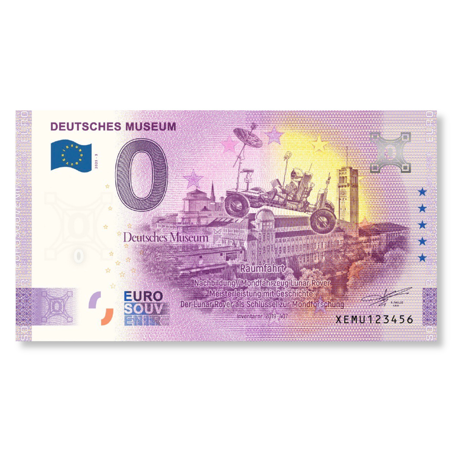 Deutsches Museum 0 Euro Schein mit dem LUNAR Rover als Motiv.