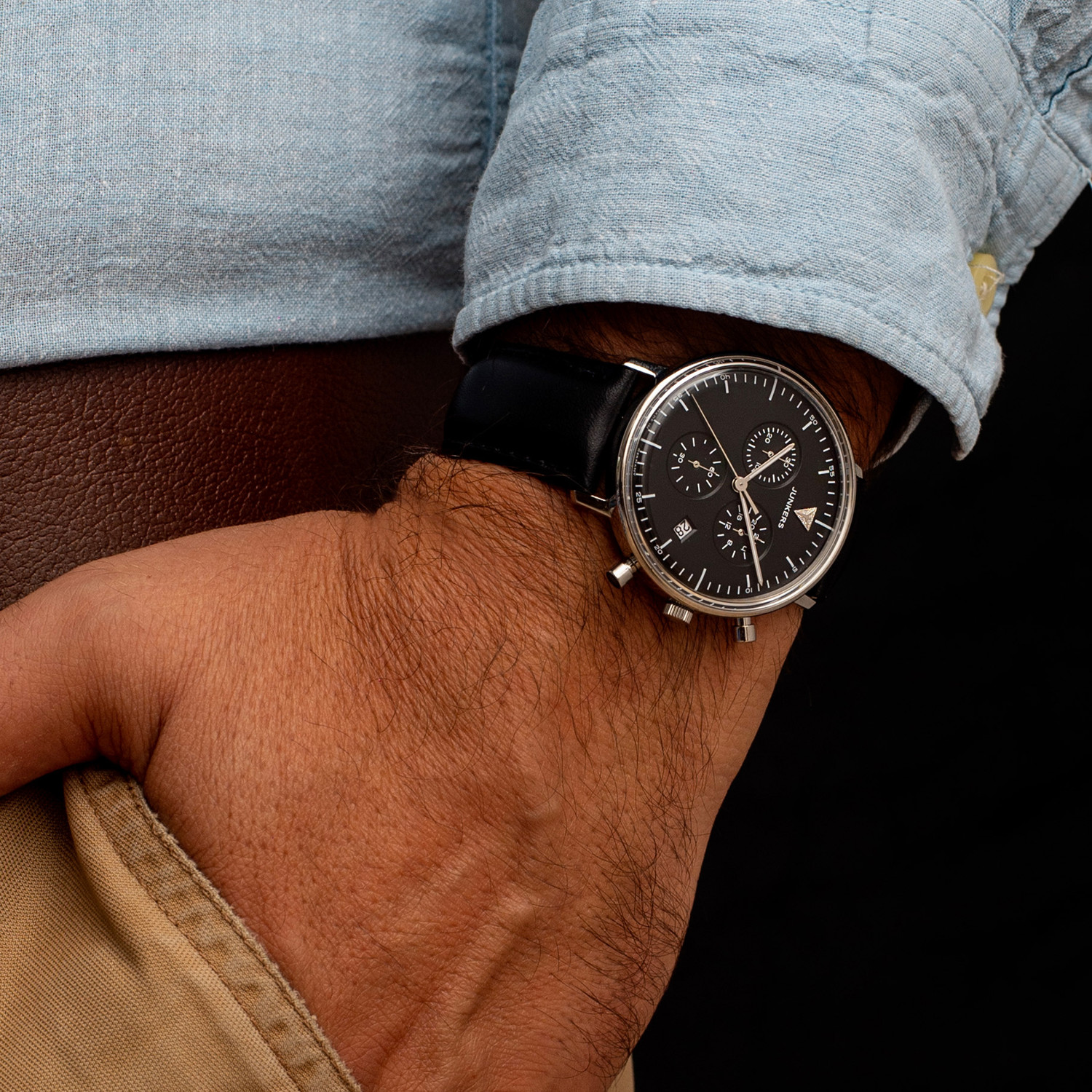 Der Bauhaus Chronograph von Junkers vereint technische Rafinesse mit dem klaren Ausdruck des reduzierten Bauhaus-Designs.