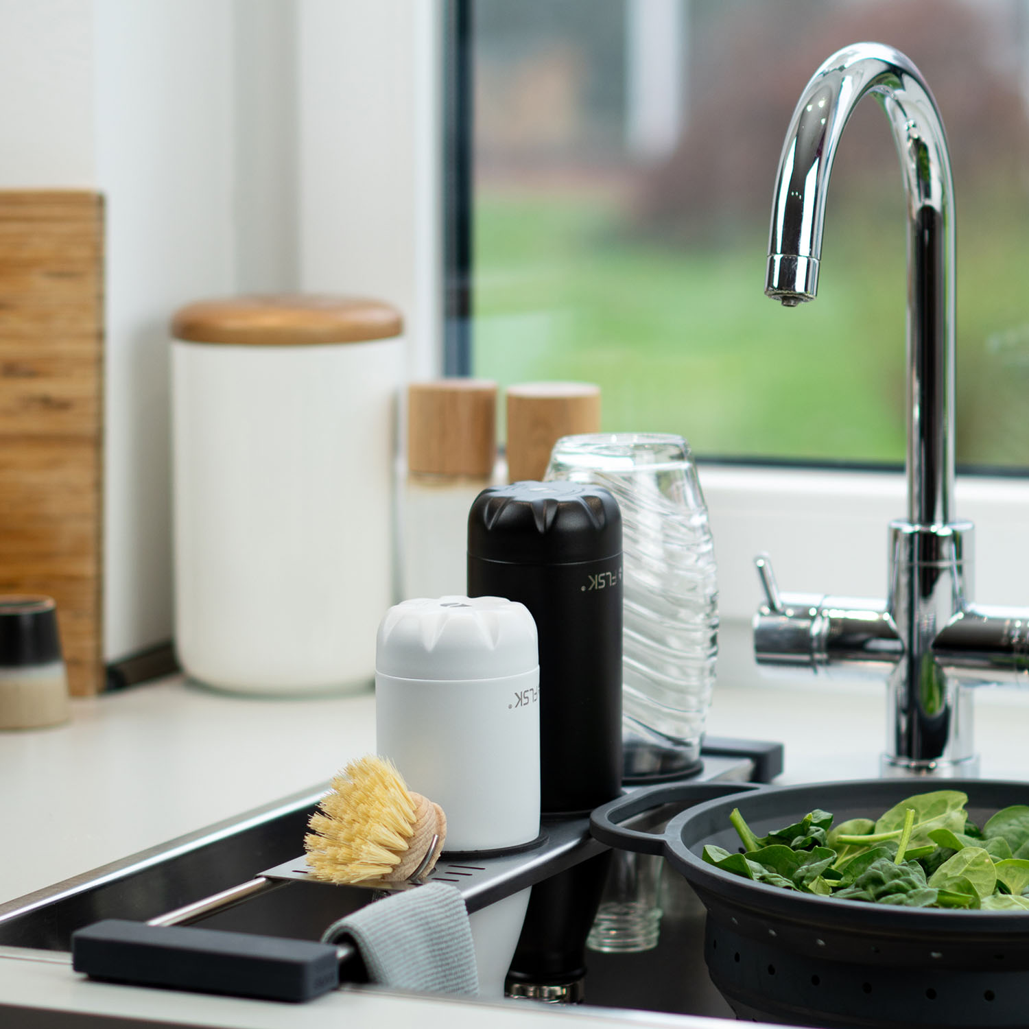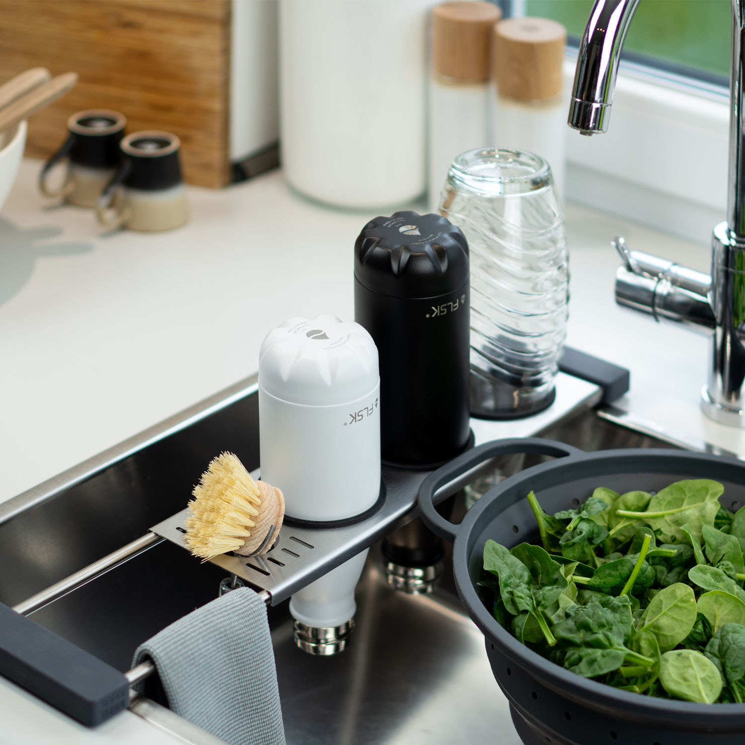 Neu in der Drip Line Serie: Der smarte Flaschen-Abtropfhalter für die Spüle drip.it Plus ist die perfekte Abtropfhilfe, um wiederverwendbare Flaschen und Becher zu trocknen.