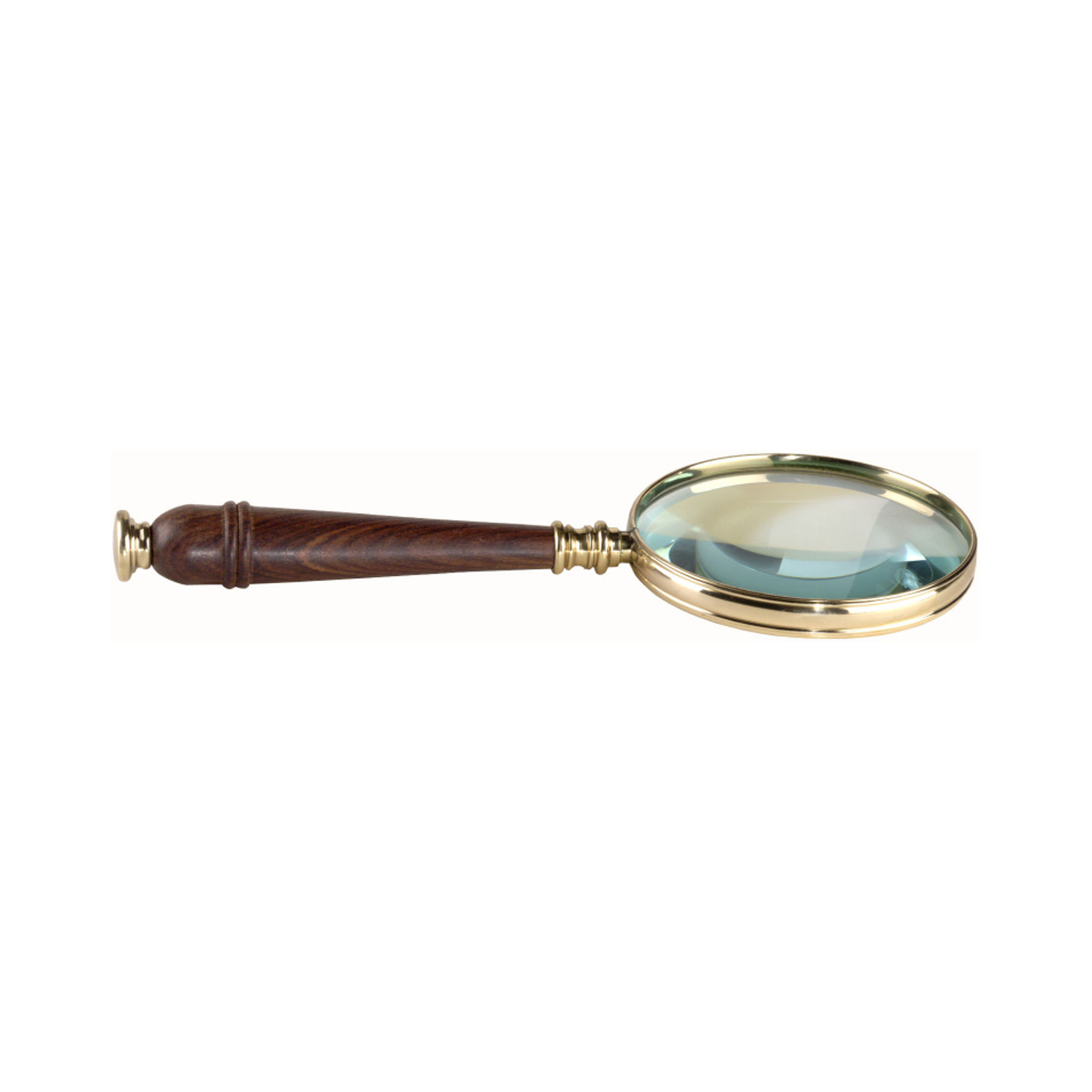 Wunderschönes und stilvolles Vergrößerungsglas. Der Griff der Lupe ist gedrechselt und aus Kirschholz, der Lupenglas Einfass ist aus auf Hochglanz poliertem Messing.