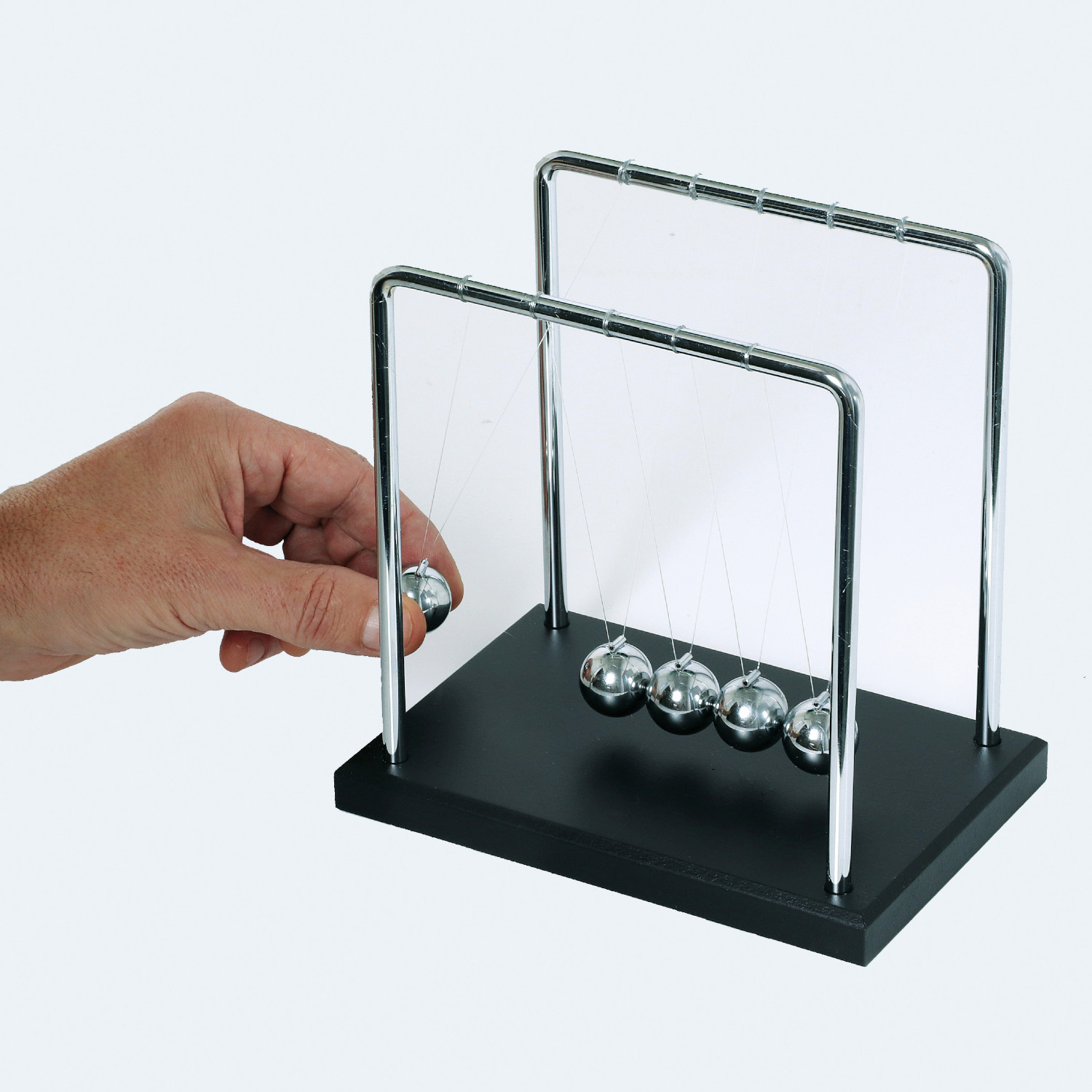 Was wohl passiert, wenn man auf einer Seite vier Kugeln abhebt und fallen lässt? Oder wenn man auf beiden Seiten gleichzeitig je eine Kugel hochhebt und fallen lässt? Probieren sie es einfach aus und lassen sie sich von dem Kugelspiel faszinieren.