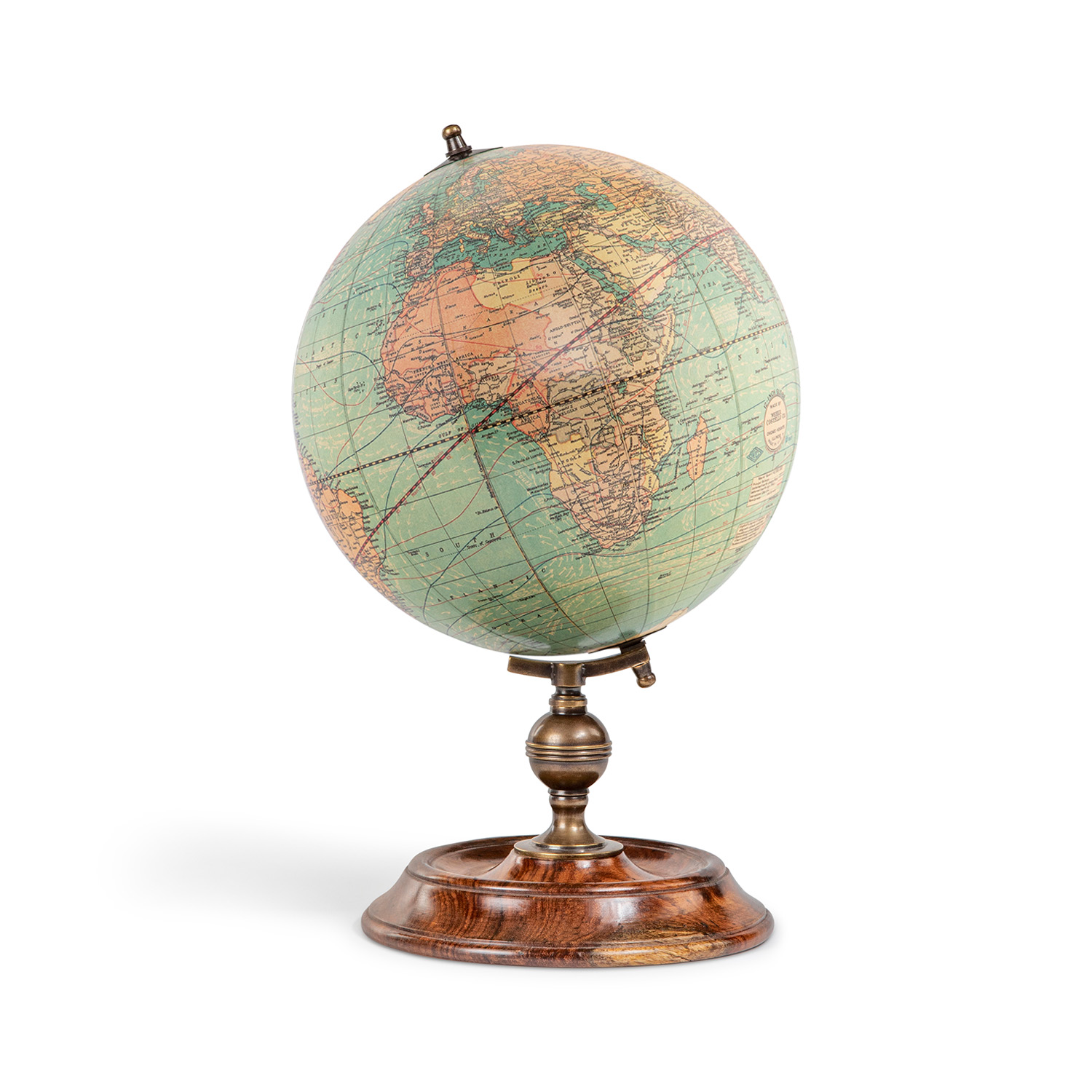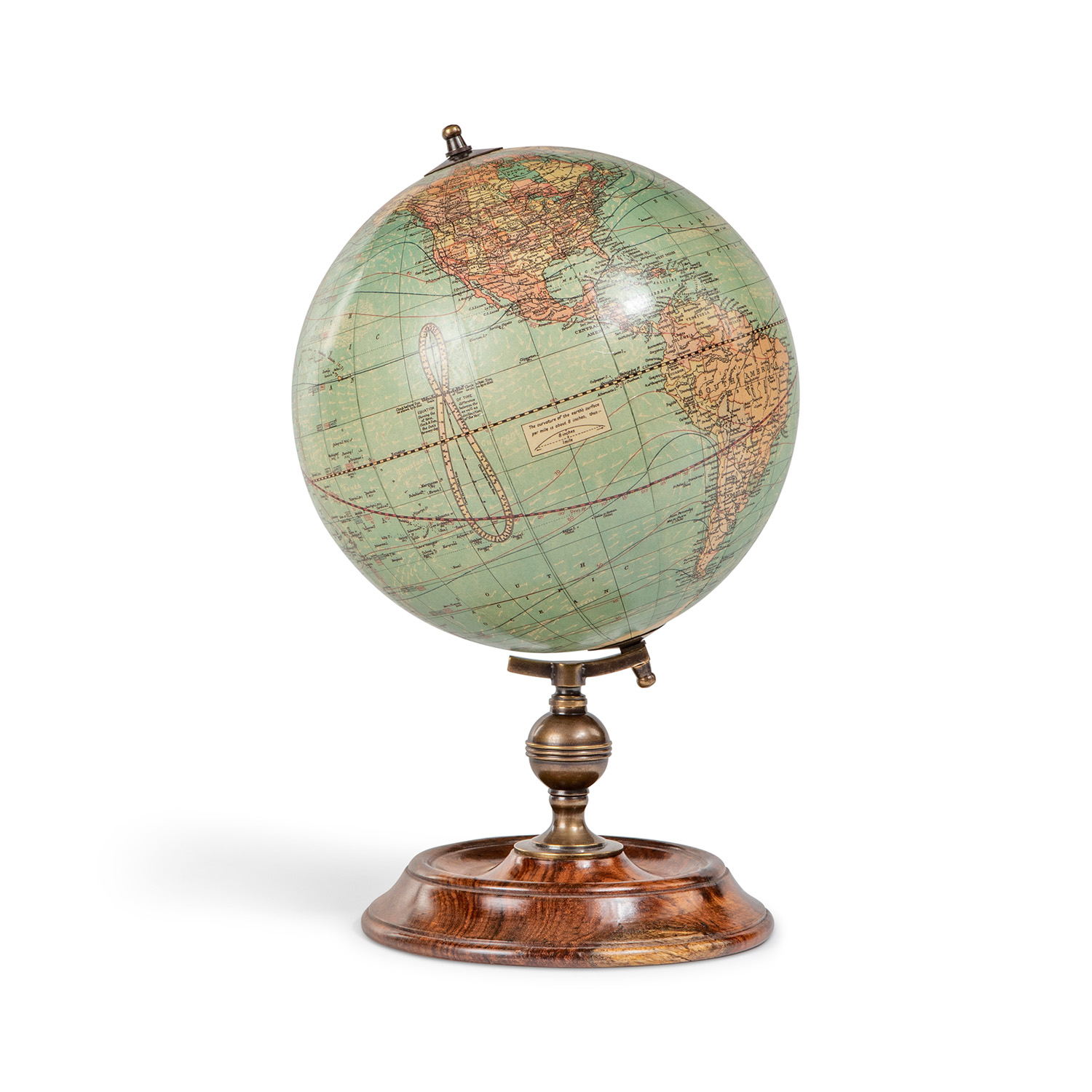 Ein moderner Klassiker. Der Globus 1921 von Weber und Costello steht auf einem ebonisierten Holzfuß mit Bronze Akzenten.