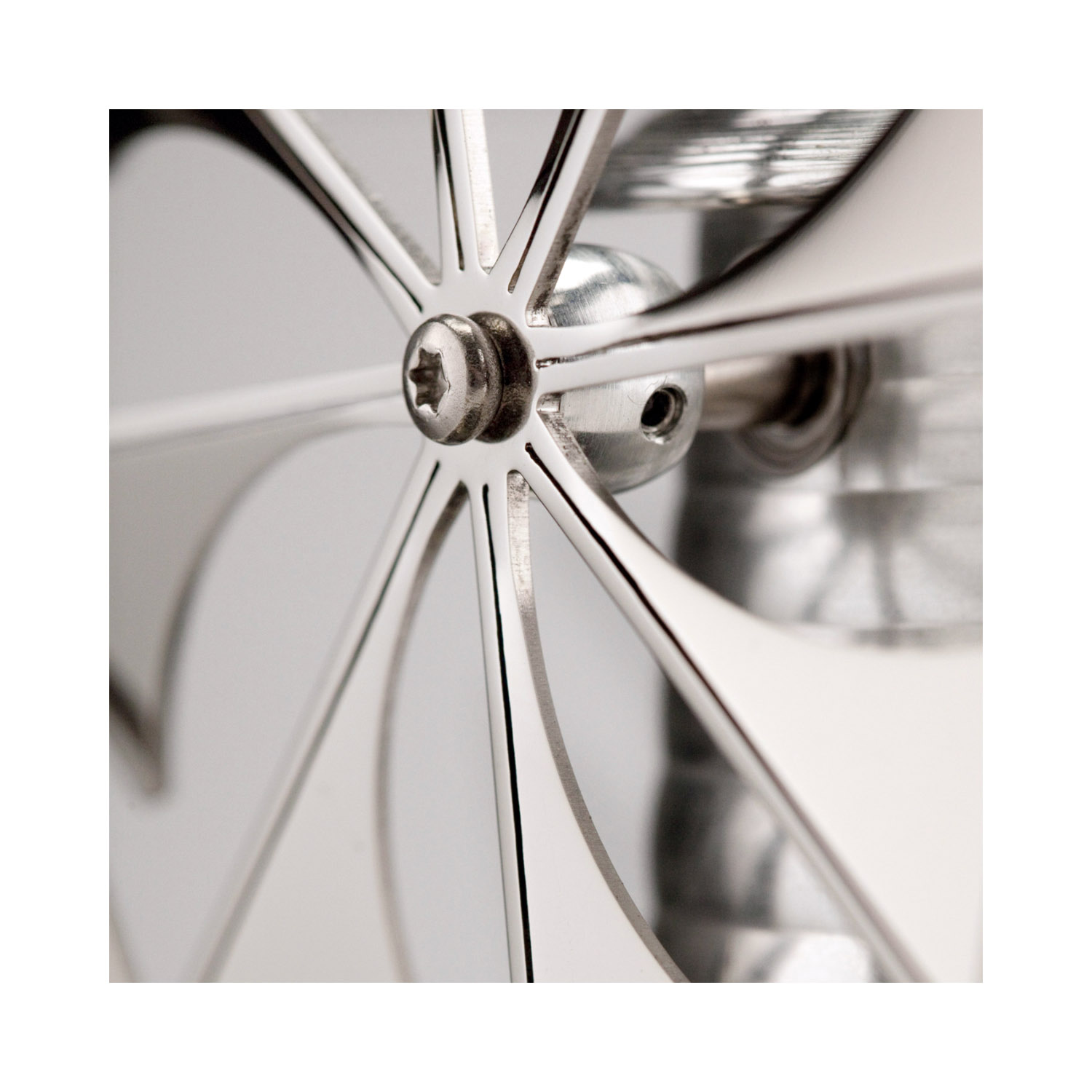 Maße 12cm x 10cm X 13cm (LxBxH), Grundplatte aus lackiertem Buchenholz, Rotor Durchmesser 92mm, 4 Kugellager, 4 einstellbare Drehzahlen, 1 O-Ring für Stirlingmotoren und Vacuummotoren, Aluminium Durchmesser 60mm, Edelstahlrotor poliert