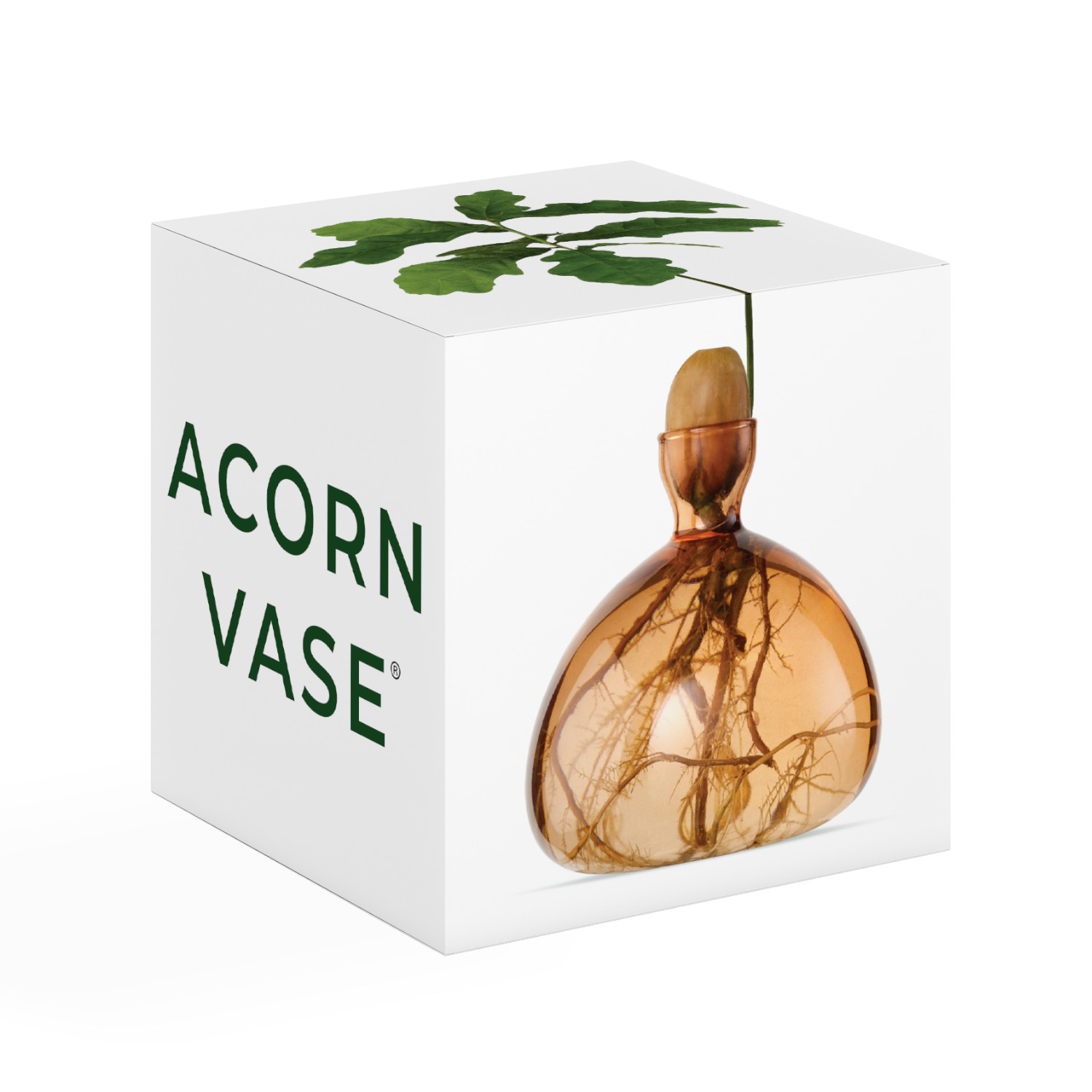 Die Eichel-Vase (10 x 10 cm) ist aus Borosilikatglas gefertigt. Der Vase liegt ein 36-seitiges Handbuch bei, das den Benutzer in detaillierten Schritten durch die Keimung des Samens und die Aufzucht einer Eichel in der Eichel-Vase führt. Das Handbuch enthält hilfreiche Anleitungen, einen Feldführer für Eichen sowie künstlerische und literarische Inspirationen, die andere dazu inspirieren sollen, eine Eiche für künftige Generationen zu pflanzen. Sowohl die Verpackung als auch das Handbuch sind auf recyceltem Karton und Papier gedruckt.