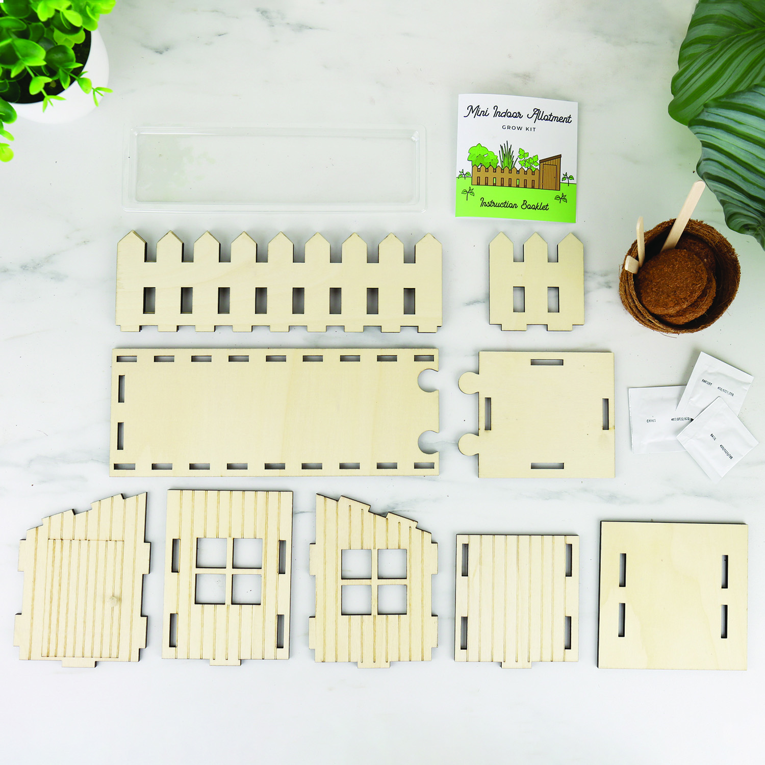 Alles was Sie zum Anlegen eines kleinen Gartens für Zuhause benötigen, ist in diesem Set enthalten. Gartenhaus, Gartenzaun, Erde und die entsprechenden Samen sind natürlich auch enthalten. Bauen Sie das Gartenhaus zusammen und legen Sie den Garten ganz nach Ihren Wünschen an.