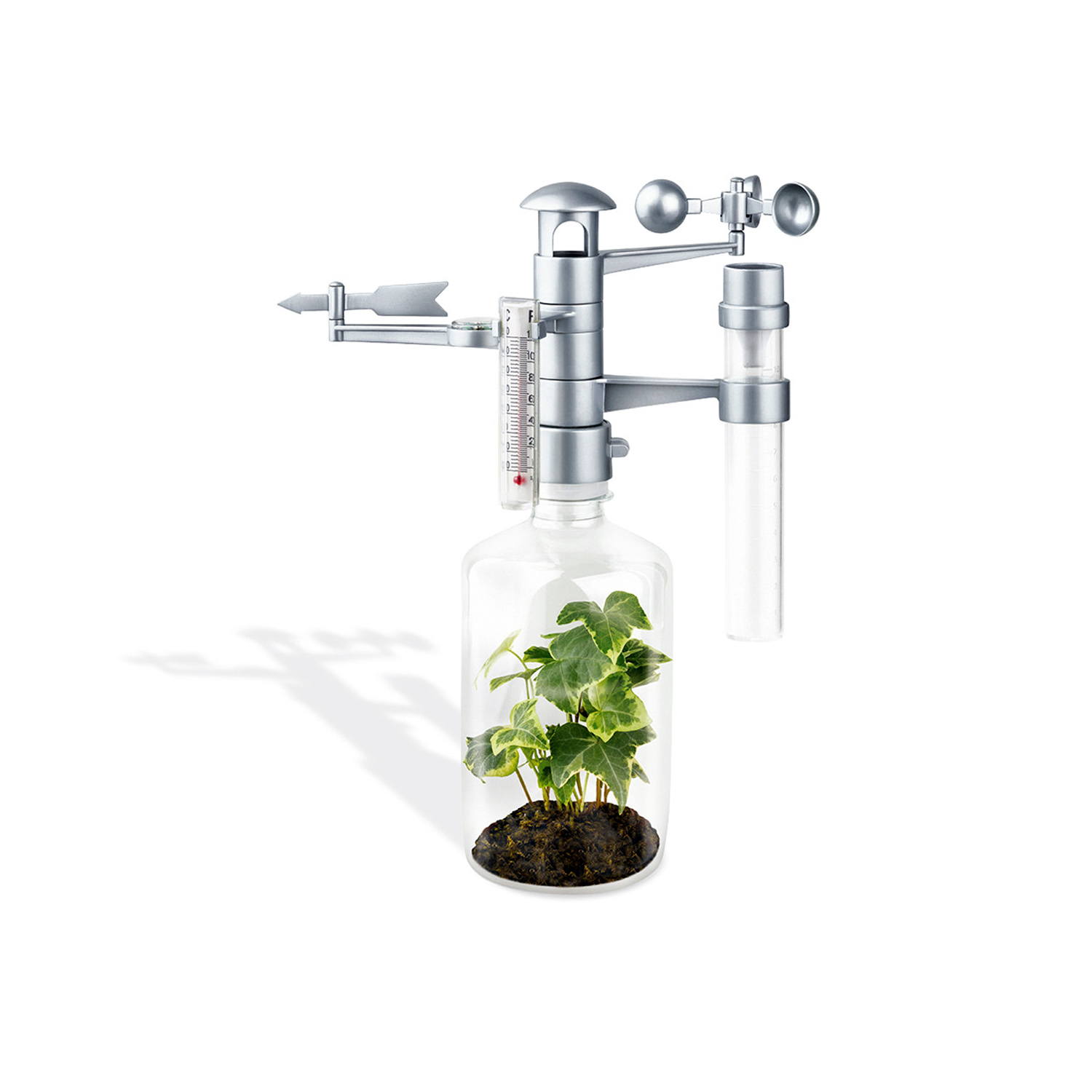 Außerdem kann ein Treibhauseffekt erzeugt werden und in Verbindung mit einer leeren Flasche dient die Wetterstation als ein kleines Gewächshaus.