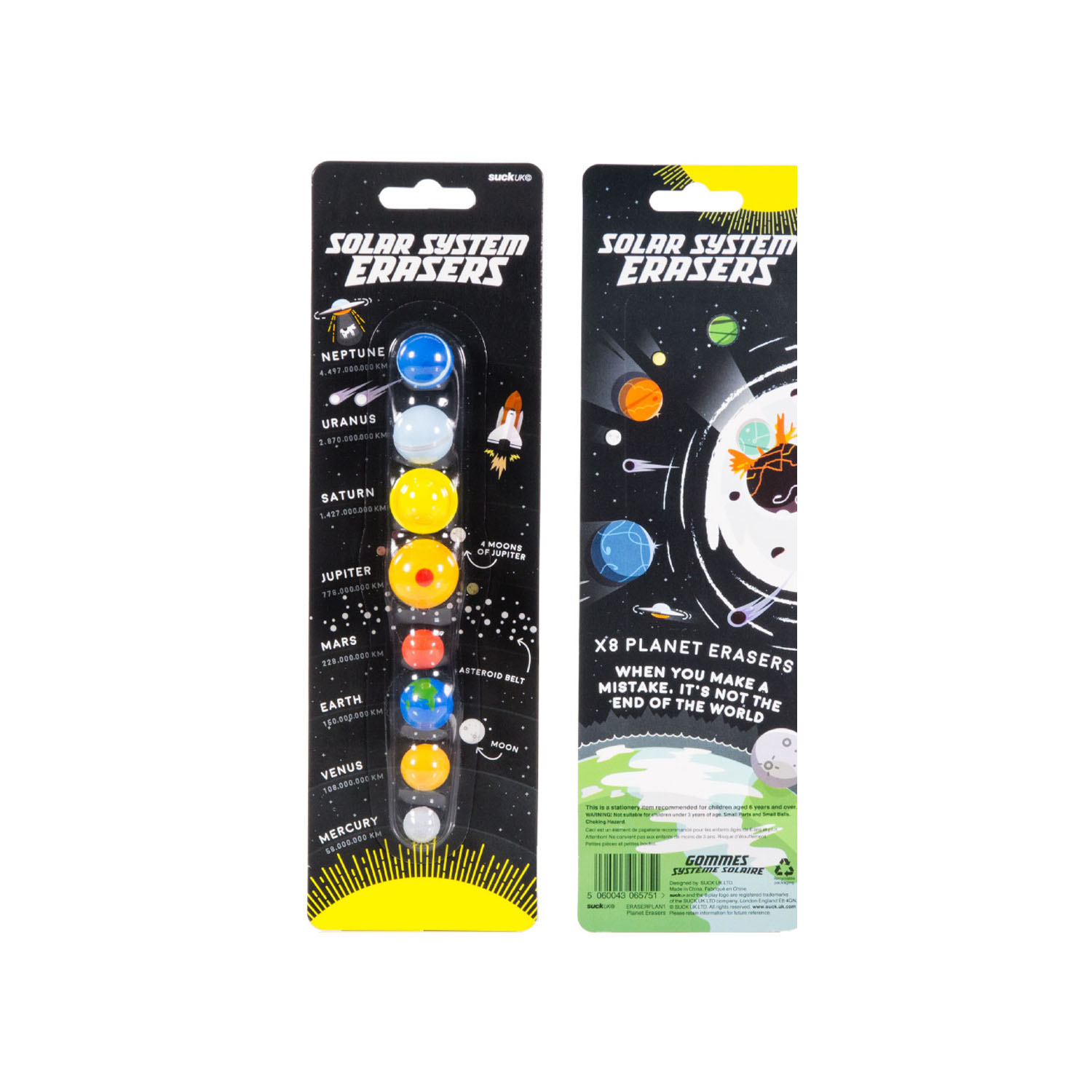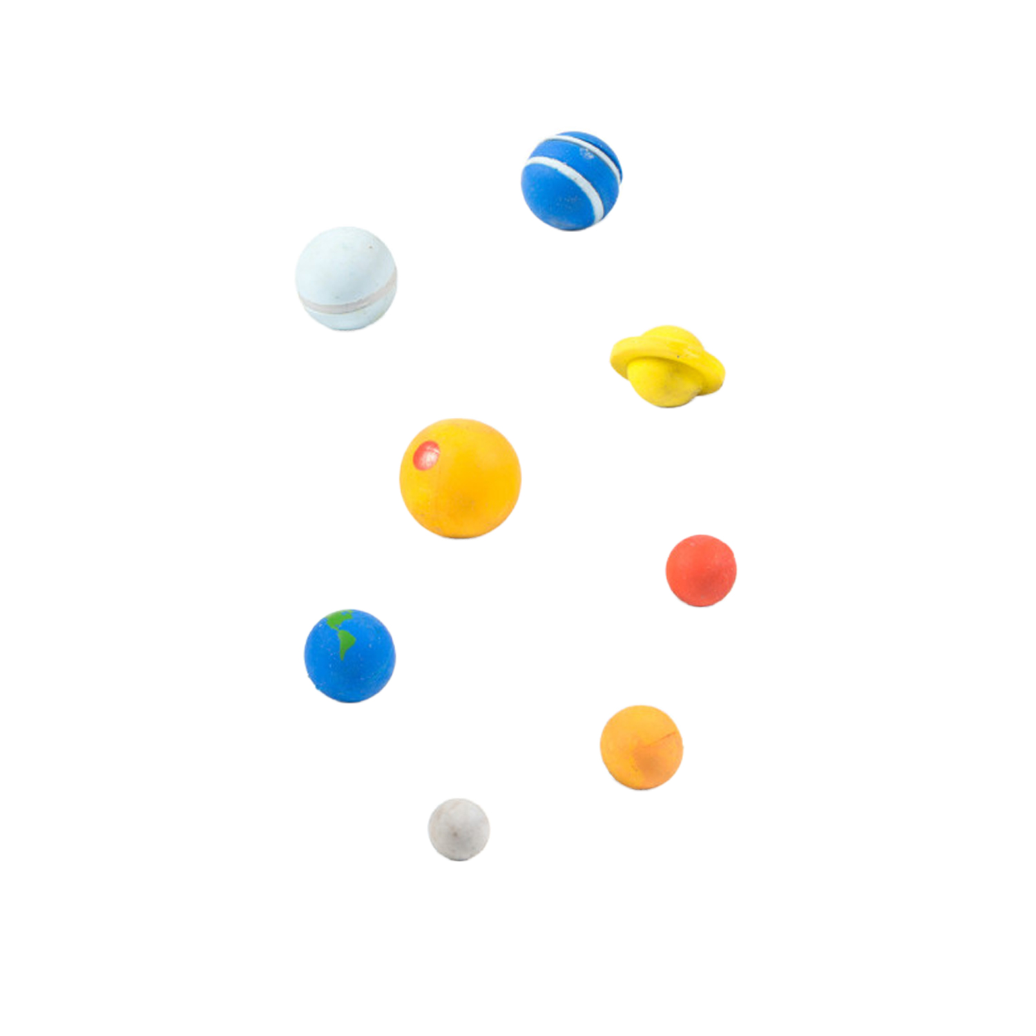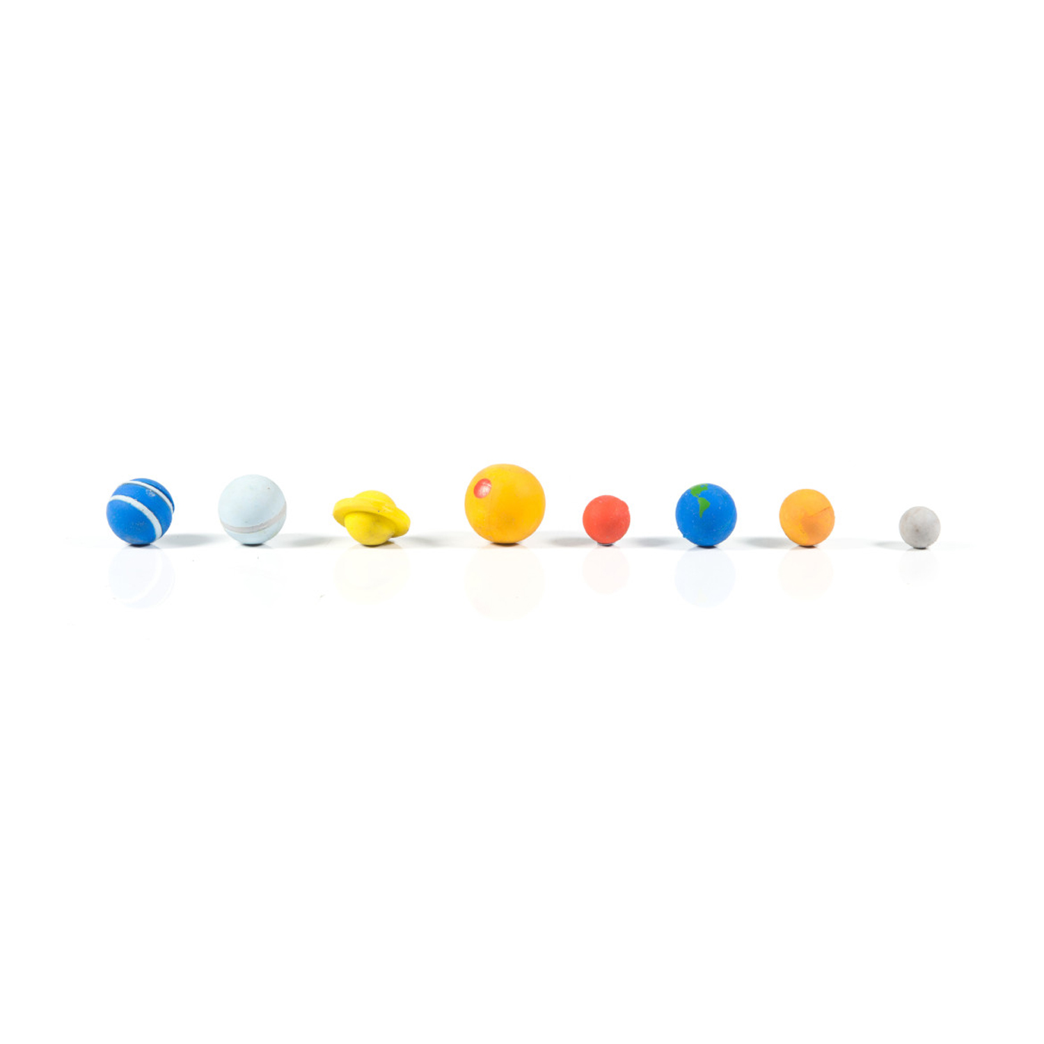 Packung mit 8 Radiergummis in Form der Planeten unseres Sonnensystems.