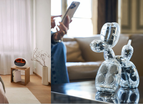 Erik bringt die Kaminfeuer-Atmosphäre in jeden Raum – eine stimmungsvolle Kombination aus Heizlüfter, Elektrokamin und Aroma Diffuser. Die Funktionen können einzeln oder zusammen genutzt werden und schaffen je nach Bedarf Behaglichkeit, Wärme und Duft. Für das Effektfeuer sorgt beleuchteter Wassernebel – kühl, russfrei und vollkommen unbedenklich. So entsteht die Atmosphäre eines Kaminfeuers. Für die perfekte Kaminfeuer-Romantik kann Erik optional mit einem ätherischen Öl die Raumluft beduften. Gemütliche Kaminfeuer-Atmosphäre Der beleuchtete Wassernebel erzeugt ein realistisches Effektfeuer. Wird zudem die Heizlüfter-Funktion aktiviert, sorgt Erik mit der ausströmenden Wärme für eine gemütliche Kaminfeuer-Atmosphäre. Raumduft für die Sinne Auf Wunsch verwandeln Sie Erik in einen Aroma Diffuser. Dafür einfach ein paar Tropfen ätherisches Öl ins Wasser geben. So entsteht ein wohltuendes Aroma, das je nach Duftnote belebend, entspannend oder erfrischend wirken kann. Effektfeuer in vier Farben Für den passenden Flammen-Effekt stehen vier Farben zur Auswahl: Bernsteinfarben für eine besonders naturgetreue Flammenwirkung sowie Rot, Blau und Grün für individuelle Stimmungs- und Lichtakzente. Soll kein Flammenspiel sichtbar sein, können die LEDs ausgeschaltet werden. Individuelle Wohlfühltemperatur Erik kann als Heizlüfter genutzt werden. Er verfügt über zwei Heizstufen und digitalen Thermostat. Dadurch lässt sich die gewünschte Temperatur von 18 °C, 20 °C, 22 °C oder Dauerbetrieb ganz nach dem persönlichen Wohlbefinden einstellen. Raumgröße bis 20 qm Maße: ca. 37 x 30,5 x 26,5 cm Geräuschpegel: < 38 dB(A)3-in-1: Heizlüfter, Aroma Diffuser und Effektfeuer, der wärmt und beduftet – alle Funktionen einzeln oder kombiniert nutzbar – Heizlüfter mit PTC-Keramik-Heizelement – 2 Heizleistungsstufen 800/1‘500 Watt – wählbare Temperatur (Thermostat) 18 °C, 20 °C, 22 °C oder Dauerbetrieb (CO) – ätherische Öle können direkt dem Wasser beigefügt werden – beruhigendes Effektfeuer mit 4 wählbaren Farben: Amber Light™, rot, blau, grün – Nebelfarbe und Nebel können deaktiviert werden – automatische Abschaltung des Effektfeuers und Aroma Diffusers bei leerem Wassertank – alle Funktionen am Gerät oder durch mitgelieferte Infrarot-Fernbedienung steuerbar – abnehmbarer Fuss für Bodenplatzierung oder erhöht z.B. auf einem Sideboard – Kippsicherung und Überhitzungsschutz inklusive. ACHTUNG: Erik ist nicht spritzwassergeschützt und darf darum aus Sicherheitsgründen nicht im Badezimmer, nicht in der Nähe von Wasser und hoher Feuchtigkeit verwendet werden.