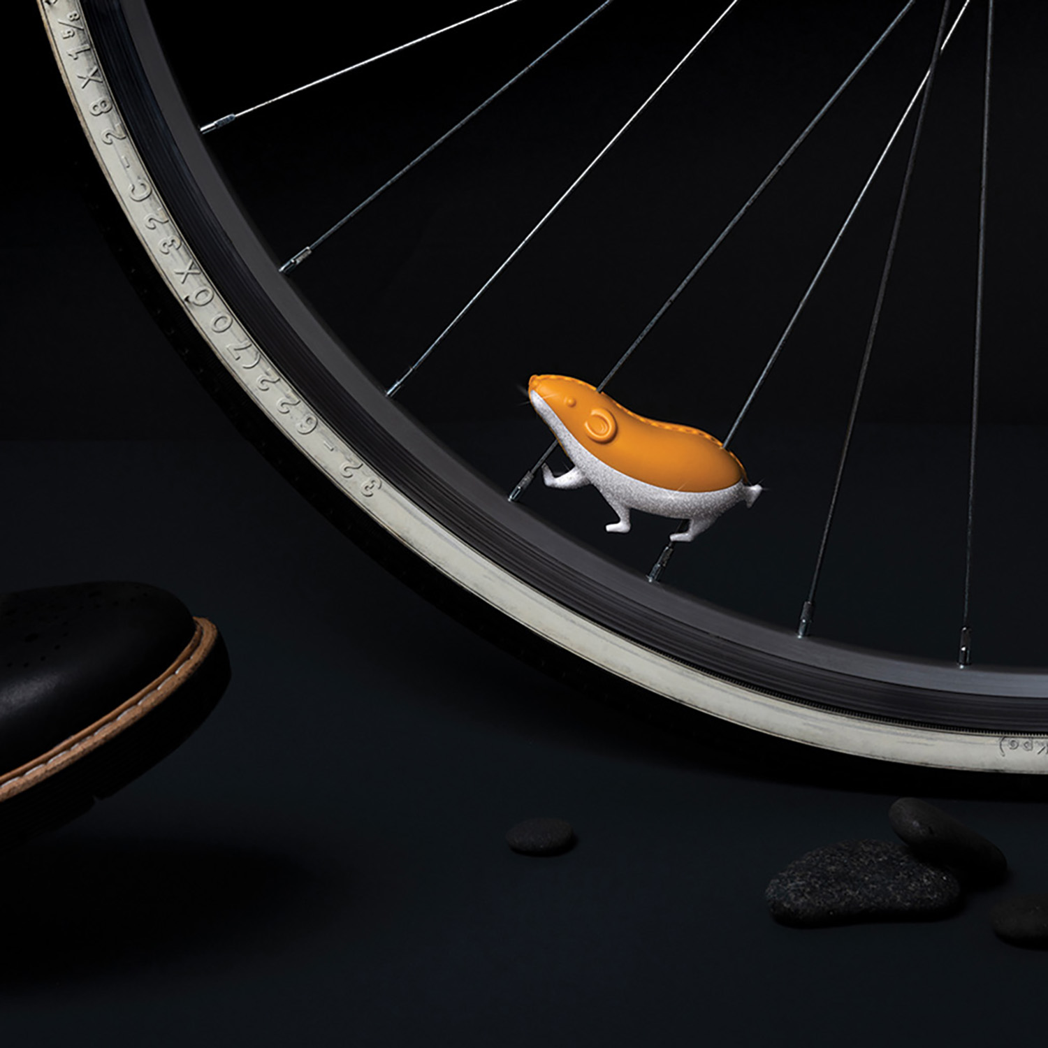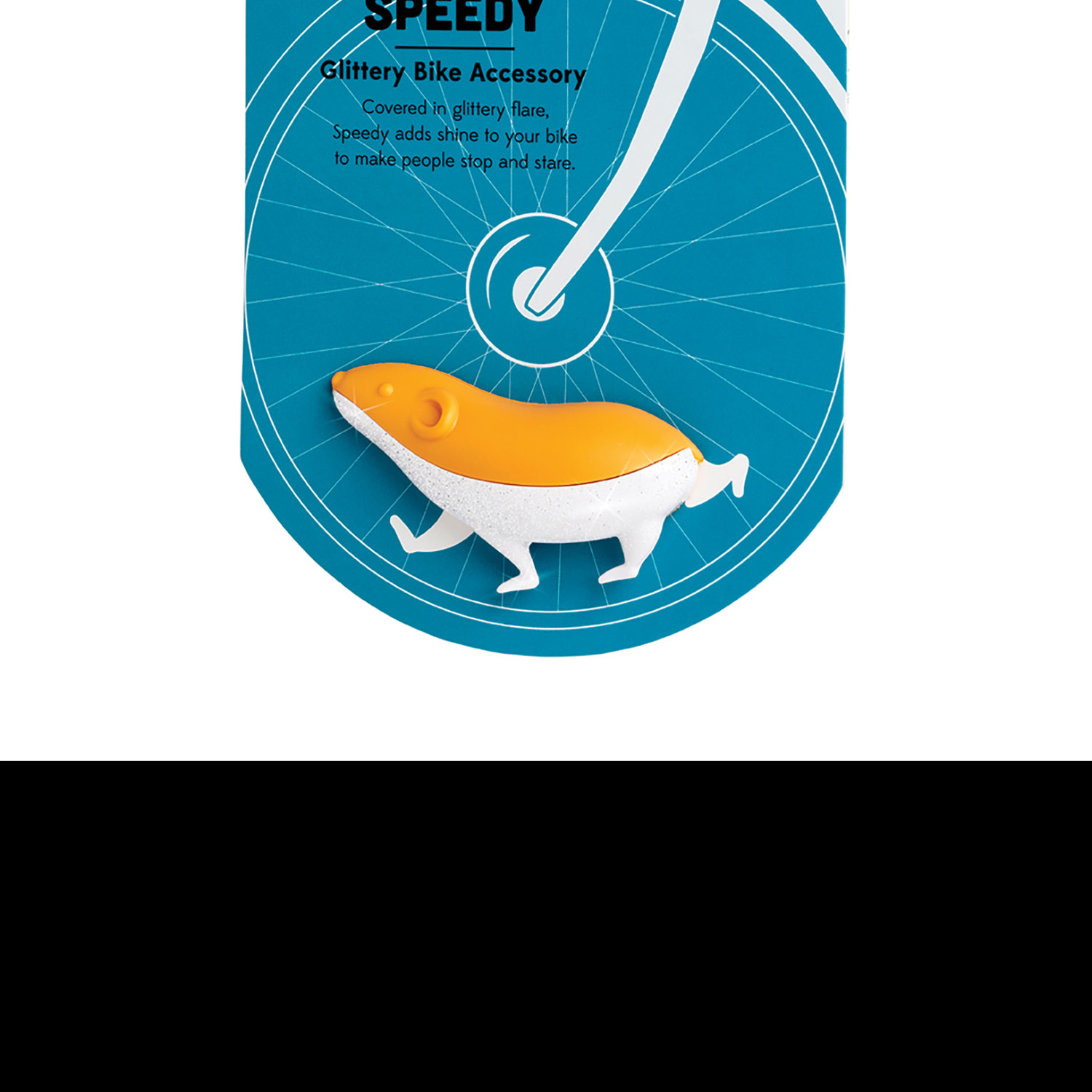 Speedy ist für alle Fahrrad- und Radgrößen geeignet und ist in Sekunden am Rad montiert. Der Speedy Fahrrad Hamster reflektiert, durch das Glitter an den Seiten, Licht im Dunkeln.