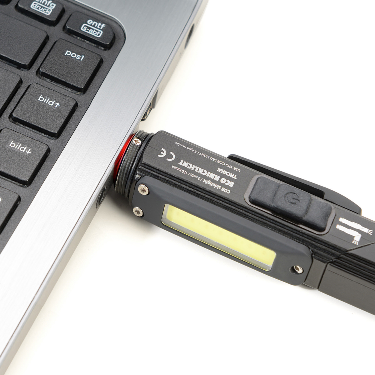 Umweltschonend über den integrierten USB-Stecker wiederaufladbar.