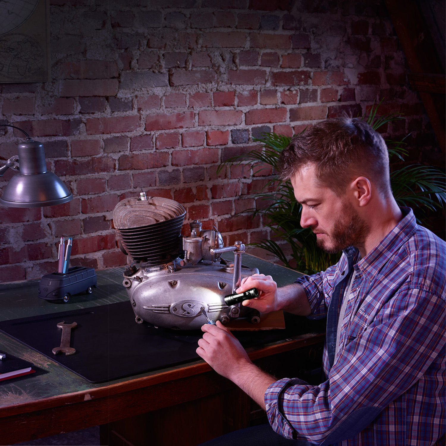 - Arbeitstaschenlampe mit magnetischer Kappe zur Befestigung an der Motorhaube, am Kühlschrank etc.