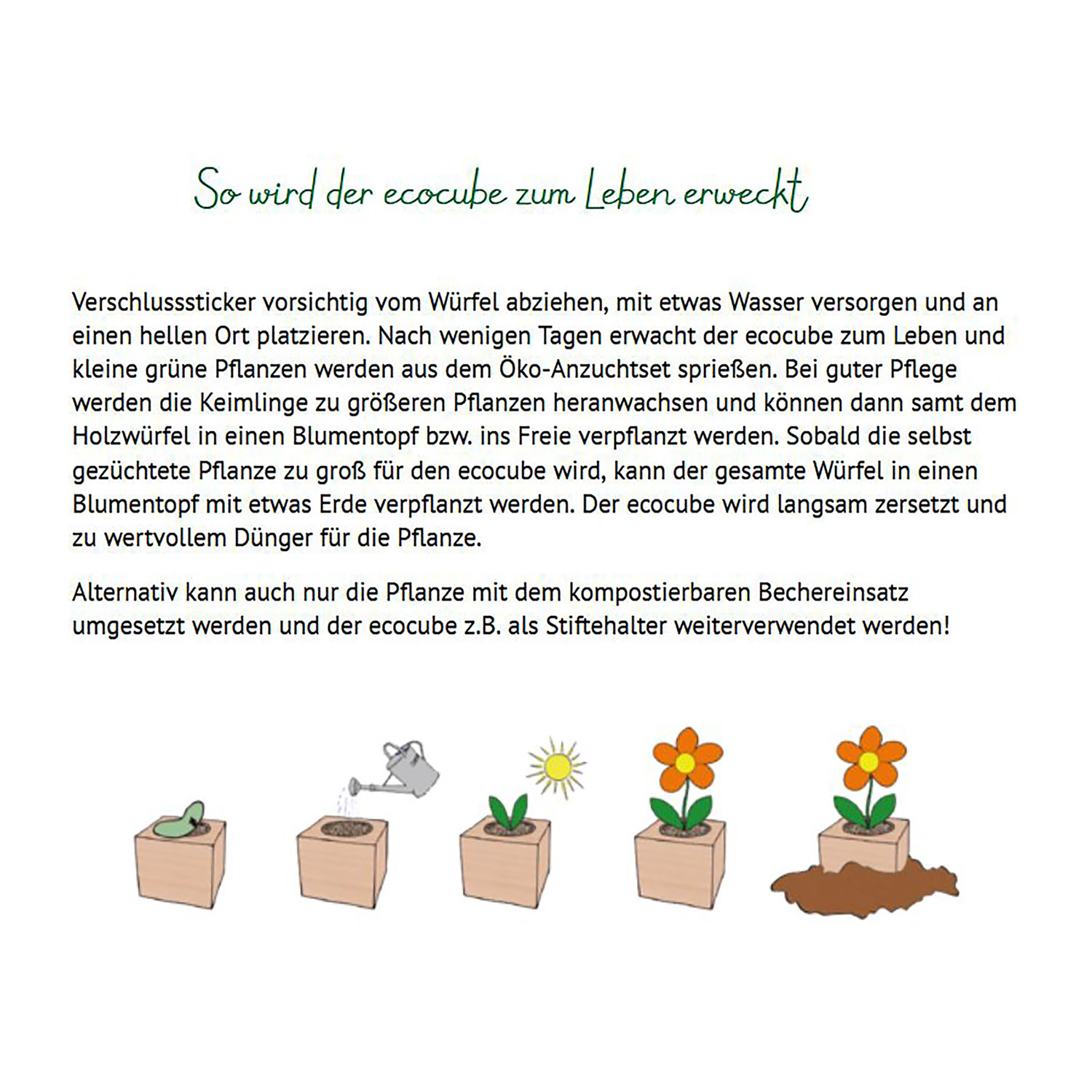 - Der Ecocube wird langsam kompostiert und zu wertvollem Dünger für die Pflanze.